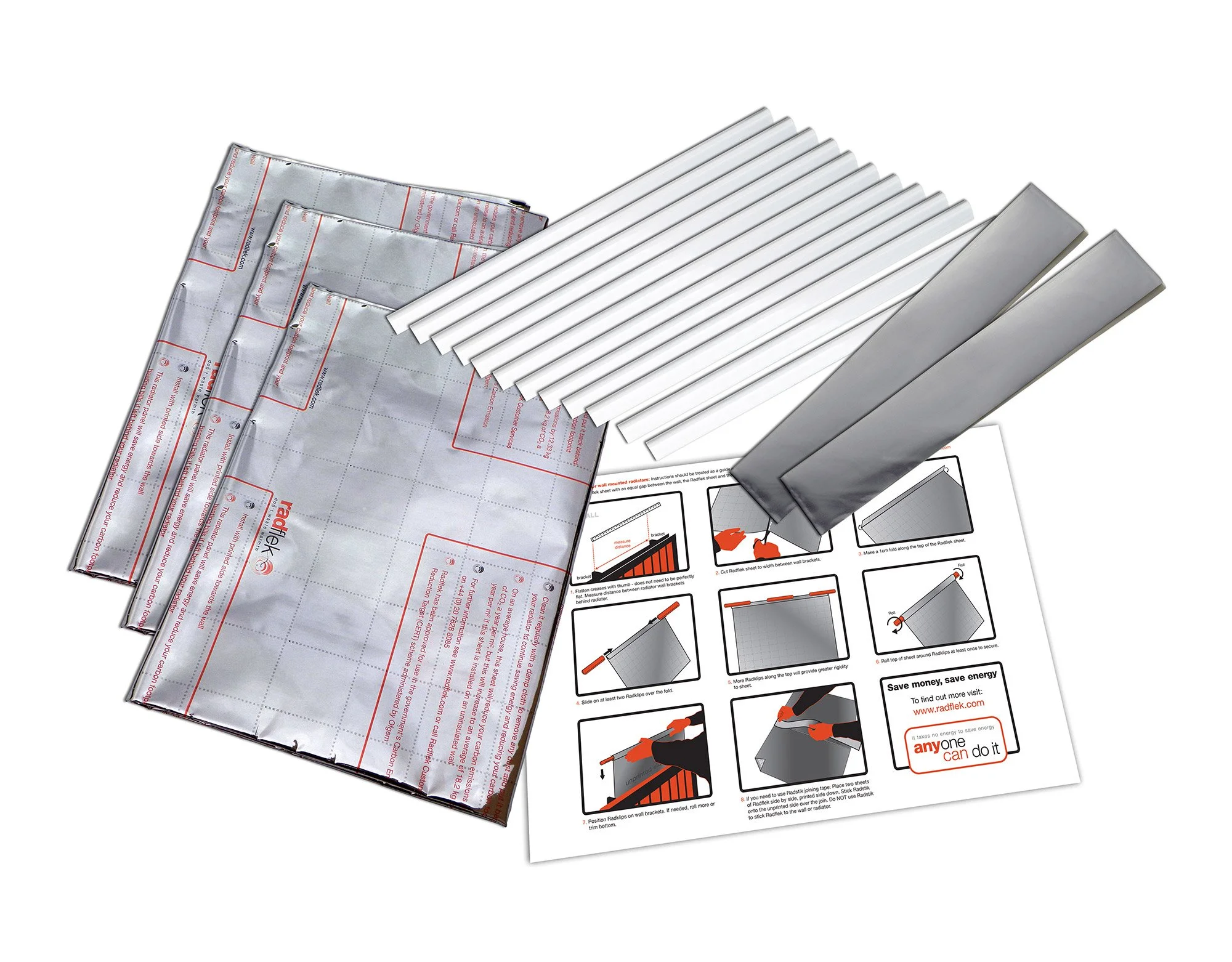 Radflek är en revolutionerande energibesparande radiatorreflektor som reflekterar 95 % av värmeenergin som utstrålas från baksidan av en radiator tillbaka till ditt rum.